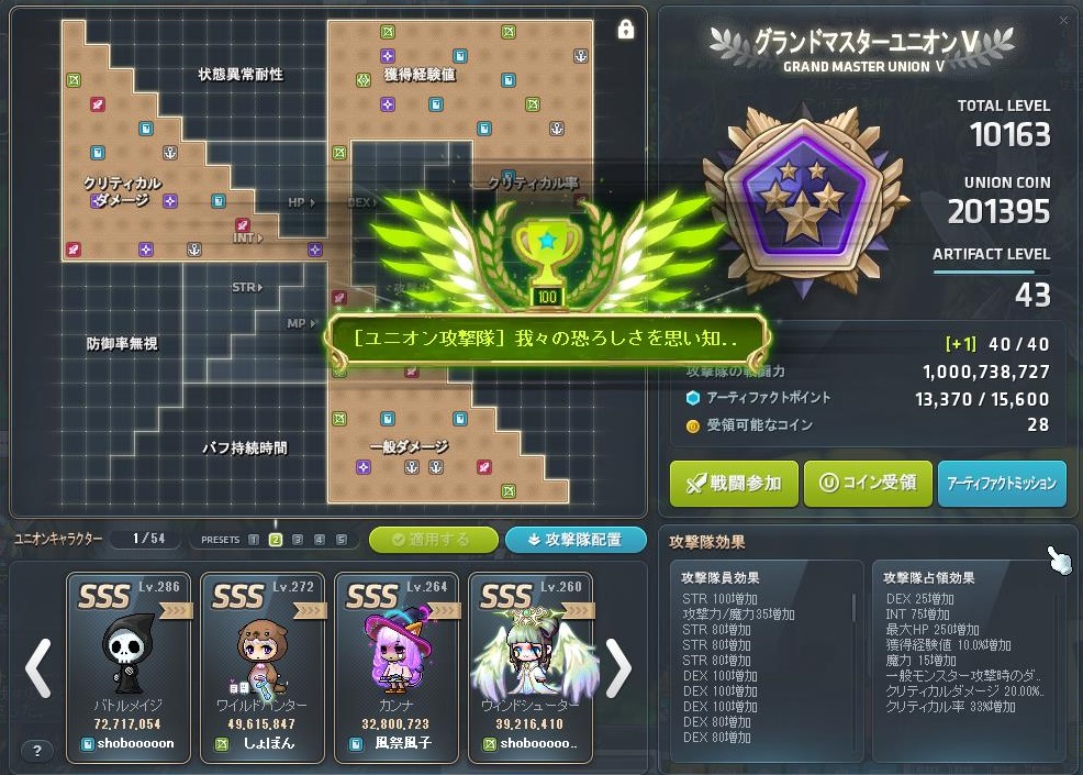 ユニオン8000とリンの5次転職は意外とあっさり達成。